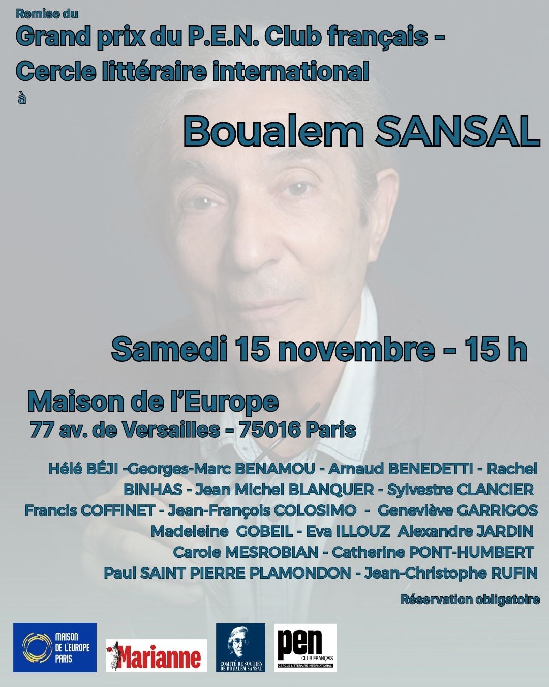 Remise du Grand Prix du P.E.N. Club français à Boualem SansalLe Comité de soutien de Boualem Sansal